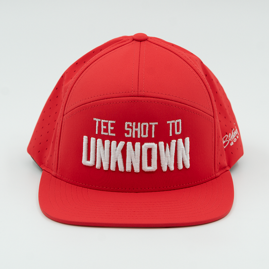 Tee Shot to Unknown Red 7 Panel Golf HatRegular price $34.99 USDRegular priceUnit price / per-